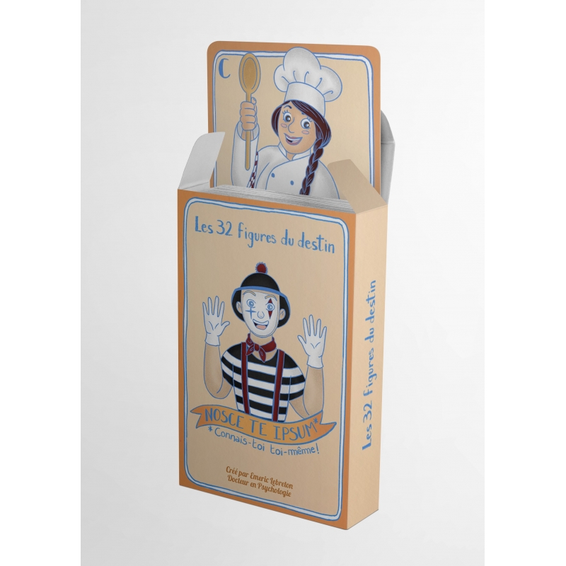 Les 32 figures du destin est un jeu de cartes destiné à celles et ceux qui souhaitent trouver leur voie. Quelle est ma place dans la société ? Quel sens donner à ma vie ? Quel métier choisir ? Conçu par Emeric Lebreton, docteur en psychologie et coach en évolution professionnelle, les 32 figures du destin permet de trouver sa figure de sens et de prendre le chemin qui lui correspond vraiment. Avec ce jeu, votre destin est entre vos mains ! Les jeunes qui doivent faire un choix d’orientation et les adultes qui souhaitent se reconvertir disposent ici du meilleur outil qui soit pour bien choisir.