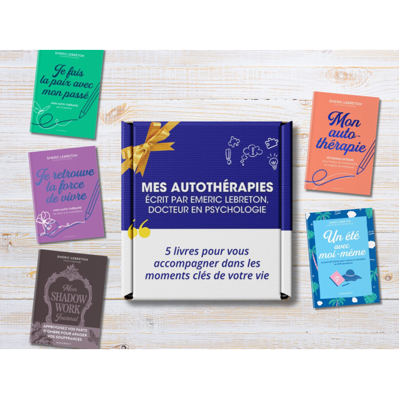 Le coffret "Mes autothérapies" est une proposition unique pour entamer un véritable chemin de transformation personnelle. Conçu par Emeric Lebreton, docteur en psychologie, ce coffret regroupe cinq ouvrages d’autothérapie, pensés pour vous accompagner dans les moments les plus intimes et déterminants de votre vie.